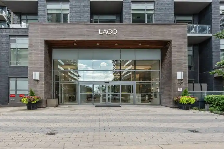 Opportunity of a lifetime! Experience your dream home in this sought-after, rare-find corner suite at Lago with a clear wrap-around balcony, offering priceless, forever unobstructed panoramic view of Lake Ontario and the CN Tower through floor-to-ceiling windows; this 2-bedroom, 2-bath residence boasts an excellent, efficient floorplan with no wasted space four walkouts to a 350 sqft balcony, plus a coveted 21-foot long parking spot on P2 and an included locker – all within a luxury building featuring 24-hour concierge, indoor pool, gym, sauna, and direct access to waterfront trails, dining, transit and more.