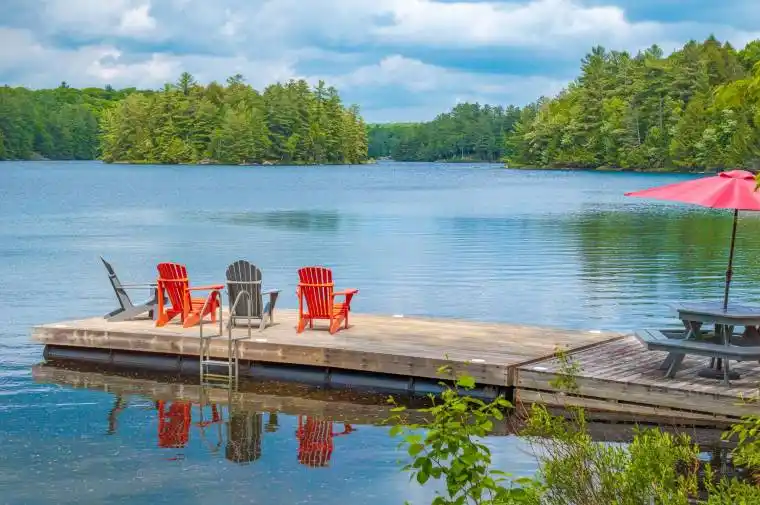 If privacy is what you seek, stop here and marvel the compelling features of this gem on a very desired lake in the heart of Muskoka! This idyllic property is beside and backs onto CROWN LAND! It is exceptionally PRIVATE! The loving care and maintenance by the owners are quite evident throughout the cottage and the property. Let your soul be warmed by all the warm pine floors, walls to ceiling, as you walk into the cottage. Your cooking talents will flow in the lovely, well-appointed country kitchen. Views of nature and cottage country wilderness through an abundance of windows. The open concept will keep conversations going and bring everyone together, as they lounge by the stone fireplace or in multiple areas of interior comfort. The Muskoka Room is the place to be when the sun goes down or any time one wants to sit beside the lake with a breeze coming through the room. A completely new system (i.e. tank & filter bed) was installed in 2000 by Thomas Contracting in Carnarvon, last pumped out in 2024. A new electrical panel was just recently installed. Walls & ceiling are fully insulated.The cottage is on a solid combined concrete/rock, full perimeter foundation. The exterior fieldstone fireplace chimney is an eye-catcher! There’s a detached, double-car garage with a work bench and loft area for extra storage in addition to some outbuildings. The lot is a 10+ in terms of smooth rock granite and mature coniferous trees & walking trails with a real Algonquinesque vibe. Smooth rocky shore, ideal for wading and yet deep water at end of large, floating dock. The lake reaches 60′ depth and supports bass & trout. Many properties on the lake are multi-generational. It is a real family-oriented lake community. Explore nearby trails on crown land for snowmobiling, hiking, ATVing, mountain biking, snowshoeing and much more. Conveniently close to the charming town of Dorset by approx 10 minutes and approximately 2.5 hours from Toronto. Start building your memories here!