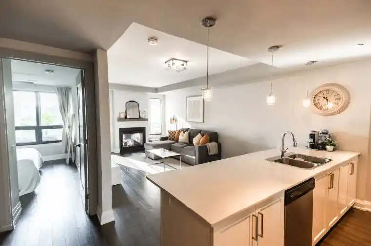 Welcome to 181 James St N, Unit 402. Enjoy ultimate in boutique condo living at The Acclamation Condos in a highly sought after neighbourhood in the heart of downtown Hamilton. This beautifully appointed luxury suite features 682 square feet walking out to a private terrace, boasting a two-sided gas fireplace & gas hook up for a BBQ. A stylish kitchen outfitted with contemporary cabinetry, pot lights, stainless steel appliances, includes a gas stove & quartz countertop. Offering a spacious primary bedroom featuring a large window & sizeable walk-in closet. The spa inspired 4-piece bathroom hosts a floating vanity & tub/shower combo. Bonus areas include a large walk-in pantry/storage room, in-suite laundry, one owned underground spot & storage locker with option to rent a second spot. Amenities include gym, roof top terrace & visitor parking. Ideally located amongst restaurants, cafes, shopping, Bayfront & 8 min walk to GO-train. Condo fees include internet/cable, building insurance, ac/heat, gas, parking, common elements & water! LET’S GET MOVING!