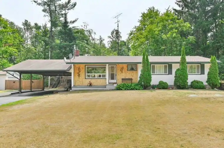 IMMACULATE BUNGALOW ON A BEAUTIFUL 6 + ACRE COUNTRY SETTING! Enjoy space for outdoor activites and no close neighbours, property abutts conservation area. Lovely grounds with nice gardens, some walking paths, level area for games, long paved driveway leads to large carport area plus detached garage, insulated and heated. Nice front porch with entry into spacious foyer with mudroom/closet area. Main level features large living room with bright windows on north and south sides for a view. Kitchen area with lots of cupboards leads to bright south facing dining room, great for large family gatherings, walkout to deck on the back. Three good sized bedrooms and 4PC updated bathroom. Lower level with open rec room and games area. Seperate entrance from carport to lower level utility room. Laundry area and 1pc bath. Small storage room. This home has been meticously cared for over the years. Some updates includes, windows, shingles & septic system. Many extra sheds for storage. Fantastic location only 10 mins to Villages of Tweed or Madoc. 2 Hours to GTA or Ottawa. All you have to do is move in. Great property, priced to sell!