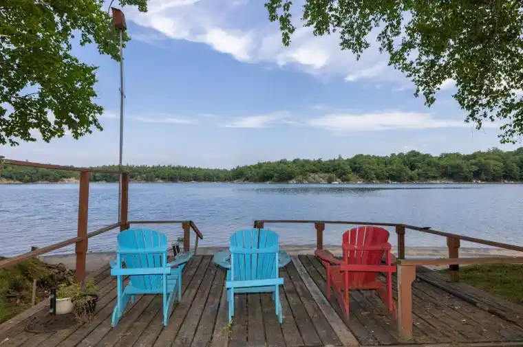 Incredible opportunity to own a charming drive-to 3-season, 4-bedroom, 2-bathroom cottage on the stunning shores of Georgian Bay. Enjoy a lovely level property with sand beach waterfront and gentle entry into the crystal clear waters – perfect for swimming, boating, kayaking and family fun. Tucked within a sheltered bay, the shoreline enjoys protection from the strong winds and waves that impact many other properties. The spacious sunroom and large windows offer sweeping views of the bay while baseboard heaters and a cozy woodstove keep you warm on cooler evenings. A separate bunkie with electricity provides extra guest space and the 24′ 11″ x 19′ garage is ideal for storing all your water toys and gear. Just a short drive to Parry Sound where you’ll have access to vibrant shops, excellent dining, local markets, marinas, golf courses and cultural attractions such as the Stockey Centre for the Performing Arts. The area is also a gateway to the renowned 30,000 Islands offering endless opportunities for boating, fishing and exploring. This property is situated on leased land giving you the chance to enjoy a prime waterfront location at a fraction of the cost of freehold ownership – an affordable way to experience the best of cottage life on Georgian Bay.