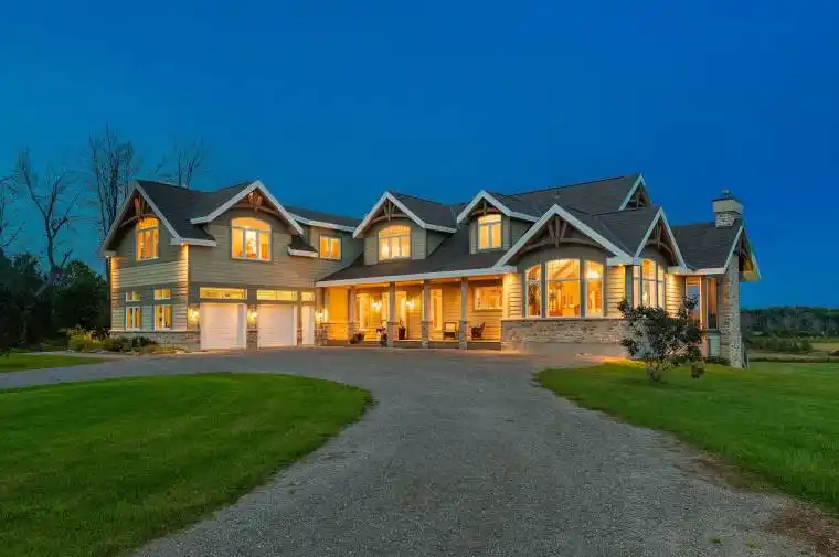 Nestled in a peaceful setting, this beautiful home effortlessly combines warmth and elegance, making it ideal for both single families and multi-generational living. Upon entering, you’ll be greeted by stone wall accents and impressive wood-vaulted cathedral ceilings that create an inviting atmosphere. At the heart of the home is the great room, featuring floor-to-ceiling windows that frame stunning views of the surrounding countryside. This versatile space is perfect for cozy evenings by the fireplace or lively gatherings, with an advanced home audio system that includes speakers throughout the house and outdoor areas. Enjoy classical music in the great room while rocking out on the veranda; the system allows for different input/output options in each space. The formal dining room stands out with three walls of windows, allowing natural light to flood the space and offering captivating views of the outdoors. Its an ideal environment for families to come together over meals and foster lasting bonds. Adjacent to the dining area, the gourmet kitchen is a delight, equipped with Viking Pro appliances and generous counter space, making cooking enjoyable for everyone. The family eating area opens seamlessly to a deck, perfect for outdoor dining and entertaining during warm months. Designed for flexibility, this home includes multiple bedrooms, ensuites, and comfortable sitting rooms. And a dog washing station for the family pet! The second-level lounge and lower-level gym can easily be converted into two extra bedrooms, accommodating single families or multi-generational setups. In this exceptional property, the thoughtful layout supports various living arrangements, creating a welcoming environment where families can create cherished memories. Whether you are a single family or a multi-generational group, this home is a perfect fit, blending comfort, elegance, and practicality.