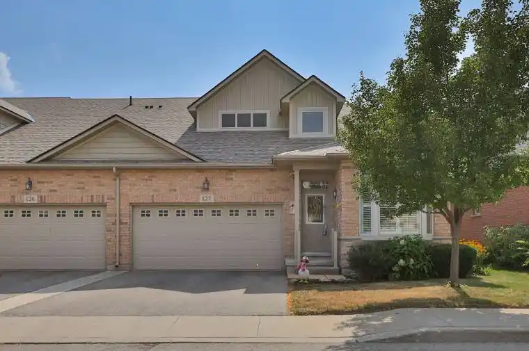 Welcome to this stunning bungaloft townhome, set within one of Burlington’s most desirable lifestyle communities. Combining comfort and convenience, this residence offers total parking for 4 vehicles, a landscaped front yard framed by mature trees, and an automatic garage with inside entry. Its location is ideal just steps from scenic parks, vibrant shopping, and dining options, all with effortless access to major highways for commuting or weekend getaways. Inside, you’ll find gleaming hardwood floors flowing throughout the main level, creating a warm, cohesive feel. The eat-in kitchen is both stylish and functional, featuring granite countertops, ample cabinetry, a tile backsplash, and stainless steel appliances. A walkout leads directly to your private backyard retreat, perfect for al fresco dining or relaxing with friends. The living room, highlighted by a soaring vaulted ceiling and cozy gas fireplace, offers an inviting space to gather, while the dining room provides a refined setting for entertaining. The main floor primary suite enhances everyday ease with its walk-in closet and 3pc ensuite, making it a perfect haven at days end. A versatile home office easily convertible to an additional bedroom and a 2pc bathroom complete this level. Upstairs, a bright and airy loft area offers flexible living potential ideal as a lounge, reading nook, or creative workspace, accompanied by a spacious bedroom with walk-in closet and a full 4pc bathroom. The lower level, currently unfinished, features a bathroom rough-in and unlimited potential to design the space of your dreams, whether that’s a gym, media room, or additional living quarters. The private backyard is a true extension of the home, with an aggregate patio bordered by lush cedars for privacy. A sprinkler system, maintained by the condo, ensures effortless upkeep. This is more than a home its an opportunity to embrace a vibrant, well-connected lifestyle in a fantastic community.
