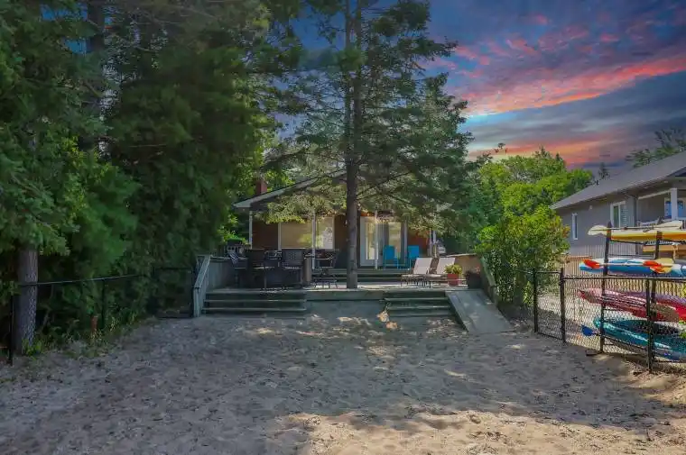 How would you like to live at Allenwood Beach with breathtaking views of Georgian Bay? Imagine the sand between your toes every day in this beautiful 3-bedroom, 2-bathroom home, plus a cozy 2-bedroom cabin for year-round use.There’s a reason people say, “location, location, location.” Coastline Drive is the perfect name for a beachside retreat. Is beachfront living your dream? Imagine a modern home that’s great for full-time living or as a weekend getaway?The main level features open-plan living, dining, and kitchen areas with a big picture window showcasing stunning beach and bay views.Step out onto the large deck and take in the million-dollar sunsets with a gentle lake breeze.The sandy front yard feels like your own beach, ideal for relaxing, entertaining, and family fun. A small sand dune adds privacy.Just a few steps down from the main area, the rec room has a full bathroom, offering extra space or serving as a spacious master suite, like the current owner uses it.With 3 bedrooms and a full bathroom upstairs, the home has plenty of space for everyone. Need more room? The fully finished cabin with gas wall furnace in the back is your answer.This self-contained cabin includes 2 bedrooms, a living area, a full kitchen, and a bathroom. It’s perfect for guests, family visits, or even rental income. Allenwood Beach is just on the edge of town. It’s a peaceful spot but only a 5-minute drive to Stonebridge town centre, Wasaga Beach Main Street, and Beach 1. Nearby are stores like Walmart, Boston Pizza, and Tim Hortons.Exciting redevelopment at Beach 1 is underway, with plans for a 150-room boutique Marriott hotel, condos, and commercial spaces. These upgrades will boost property values significantly. Roof reshingled 2020. New siding 2021. New gas fire 2021. Surge protection on main panel.