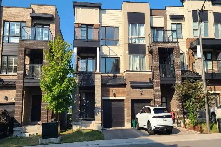 Rare end-unit townhome (Feels like a Semi) boasting a spacious fourth-bedroom family room and stunning pond views. This modern gem offers an open-concept main floor with a bright living area, dining room, and kitchen, all overlooking the serene pond, plus main-floor laundry and garage access. Upstairs, three generous bedrooms include a primary with a large ensuite and breathtaking pond views, complemented by a second bedroom with a charming street-facing balcony. The third-floor family room, doubling as the fourth bedroom, features a two-piece ensuite, street view balcony and sliding glass doors to an incredible sun deck with panoramic pond views. Enjoy tranquil walks along the pond’s path, modern amenities, and a home in excellent condition-perfect for families seeking a rare, scenic retreat in Oakville. Short walk to the park and school see photo.