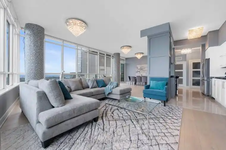 Exquisite & Private Penthouse Living with Panoramic Lake Views. Welcome to one of the city’s most coveted luxury residences, Maple Leaf Sq. This breathtaking 2+1-bed, 2-bath Penthouse corner unit redefines sophistication & elegance. Spanning 1,424sq.ft. of meticulously curated living space, this architectural masterpiece is a true standout. Step into a world of refined design and prestige, where 10-ft ceilings & wraparound windows flood the space w/ natural light & showcase Eastern & Southern views, incl. panaromic views of Lake Ont. From sunrise -sunset, the vistas are nothing short of spectacular. The chefs kitchen is a modern showpiece, outfitted w/ custom cabinetry, stainless steel appliances, a breakfast bar, & gorgeous exotic black galaxy granite countertops that shimmer beneath soft accent lighting. Rich 7 1/4 Canadian White Oak hardwd floors contrast elegantly w/ natural white marble flooring, creating a seamless blend of warmth & luxury. The open-concept living & dining space is framed by mosaic-tiled columns. Entertaining here is an absolute pleasure. Two balconies provide ample outdoor space & the perfect retreat to take in the lake breeze & cityscape. The primary suite is a sanctuary of indulgence, adorned w/ wallpaper embedded w/ genuine Swarovski crystals, adding a subtle sparkle to every moment, & features a spa-inspired ensuite w/ a massive shower, dual raindrop shower heads, white onyx countertops, & a walk-in closet customized for functional elegance. Both bedrooms offer privacy, abundant space & serene views. Additional incl. custom motorized win. shades, designer lighting & impeccable craftsmanship throughout.This prestigious LEED-cert. building offers direct access to Scotiabk Arena,Union Station,the PATH,LONGOs, LCBO,TD Bk, restaurants,retail & LeGermain Hotel. Amenities: rooftop pool, sundeck, indr pool, hot tub, fitness ctr, Sky Lobby Lounge, theatre rm, biz ctr,24-hr concierge. Steps to Rogers Ctr, Parks, waterfront trails & entertainment.