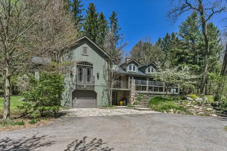 Welcome to this exceptional 5-acre property in King City, tucked into the scenic and protected landscape of the Oak Ridges Moraine. This beautiful property offers a rare chance to live surrounded by nature without sacrificing refined comfort. The home blends custom architecture with peaceful seclusion, an ideal balance of sophistication and serenity. Inside, the space opens up to a dramatic 18-foot ceiling in the great room, where natural light pours in through oversized windows, offering panoramic views of the surrounding greenery. The open layout connects to a Muskoka room, multiple fireplaces, and a series of decks, porches, and patios, inviting you to enjoy the outdoors in every season. The primary suite feels like a private retreat, complete with a sitting room perfect for quiet mornings or an evening wind-down. Whether hosting friends or simply relaxing at home, the thoughtful design makes every space both functional and welcoming. Step outside and explore landscaped gardens, forest trails, and rolling terrain that lead through an ecosystem unique to the Oak Ridges Moraine. While it may feel like a true country escape, you’re less than 10 minutes from Hwy 400, King City GO Station, and excellent schools offering a rare mix of tranquility and convenience. This isnt just a home, its a lasting investment in lifestyle, landscape, and legacy. Furnace (2020), Water Heater (2020), Water Purifier (2020), Roof (2020), Fibre Optic Internet.