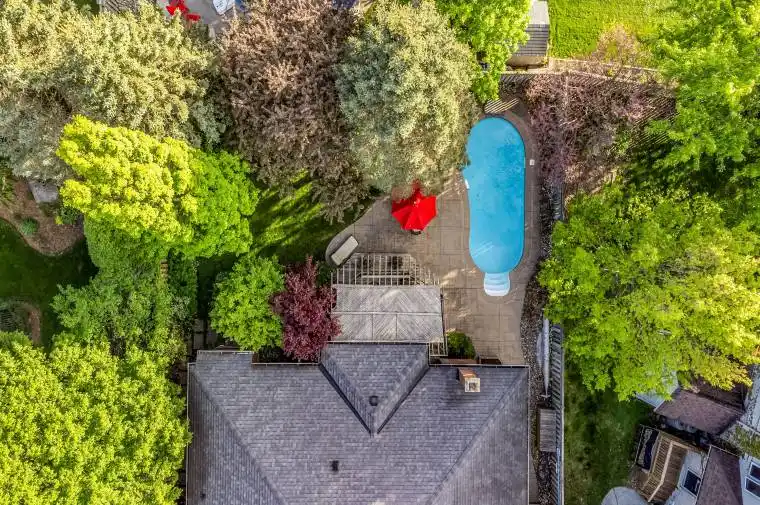 Welcome to a rare offering in the prestigious Kortright Hills community: an executive bungalow boasting 2220 sq ft of meticulously designed living space. Tucked away on a tranquil cul-de-sac, this home offers 3 plus 2 bedrooms and 3 bathrooms, ideal for families and those who love to entertain. Step inside and discover the wonderful principle rooms, adorned with exquisite hardwood and travertine floors. The sunken living room provides a cozy retreat, featuring a fireplace bordered by custom built-in cabinetry and a classic mantle. Both the elegant dining room and the spacious family room boast impressive cathedral ceilings, adding an airy and grand ambiance. The family room also includes an open gas fireplace, perfect for intimate gatherings. The heart of this home is undoubtedly the kitchen, showcasing antique white cabinetry, gleaming stainless steel appliances, and luxurious granite counters. A large island with seating for four offers a casual dining option. From the kitchen, walk out to a charming covered deck, ideal for alfresco dining and enjoying the beautifully landscaped backyard. The primary bedroom is a true sanctuary, complete with a beautiful ensuite bathroom and a generous walk-in closet. The fully finished lower level expands your living space significantly, featuring a fabulous recreation room with its own kitchen perfect for an in-law suite or entertaining hub. This level also includes a spacious three-piece bathroom, two additional guest bedrooms, and an excellent laundry room.The exterior of this property is just as impressive as the interior. Beautifully landscaped, it features a cut stone walkway and stairs leading to the front door, with matching cut stone lining the driveway. The backyard oasis includes a stamped concrete patio and surround for the inviting kidney-shaped salt water pool, offering endless summer enjoyment. This home is truly a rare and fabulous offering, combining luxury, comfort, and an unbeatable location.