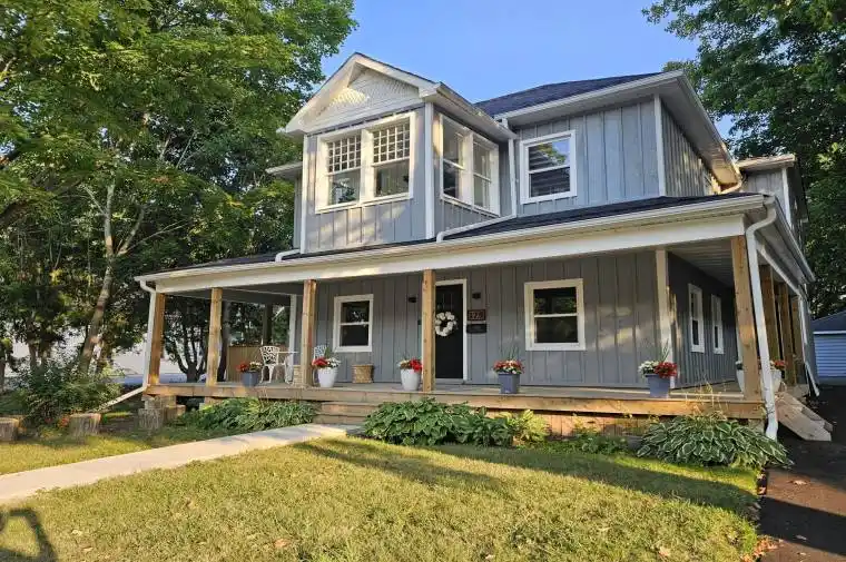 Fully renovated form the studs out with a striking three-level addition (2022-2023), this 5 bedroom, 4 bath residence perfectly blends historic farmhouse charm with modern luxury. Set on a large lot surrounded by mature trees, the property features a newly rebuilt asphalt driveway (2025) with parking for up to 6 cars, a private detached garage with heating and A/C, and a new storage shed (2023). The setting combines urban convenience and cottage-style living, just including a chef’s kitchen with a large island, stainless steel appliances, and walkout to the deck. The main floor offers a bedroom/office with a 2 piece bath, while upstairs the original sunroom provides a quiet retreat. The primary suite features its own Ensuite. All bedrooms have wood flooring, pot lights, and generous closets, with a third full bath and convenient second floor laundry. The lower level is ready for your finishing touches. Ideally located within walking distance to daycare, schools (Keswick PS – French Immersion & W.J Watson PS), and cafes, and shops, with Rayner’s Park boat launch minutes away, this is a rare opportunity to live, work, and play only 45 minutes from the GTA. All application for CR@ zoning is underway, which would allow professional offices, medical clinics, daycare, and other commercial uses. The City has granted temporary mixed commercial use until the final approval is issued, making this home an ideal live-work opportunity or investment for those seeking flexibility.