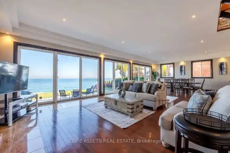 Gorgeous Lakefront Residence! This magnificent home showcases an inviting layout that backs onto Lake Ontario. The sprawling main floor presents awe-inspiring views of the lake from every angle. With soaring ten-foot ceilings, gleaming hardwood floors, a charming wood-burning fireplace, and numerous walkouts to the waterside patio, it’s an entertainer’s dream. Upstairs, three generously sized bedrooms await, two of which boast access to a balcony for enjoying the picturesque lakefront scenery. The master suite is a lavish sanctuary complete with a deluxe 5-piece spa-style bathroom. Recently renovated, the basement now offers an additional 3-piece bathroom, living area, and two extra bedrooms. Situated conveniently close to the highway, it provides effortless commuting to Hamilton or Toronto.