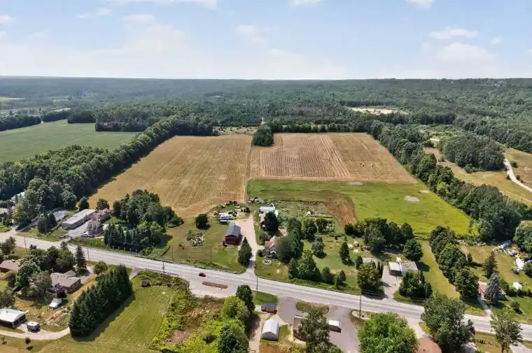 Great development opportunity on HWY 93 in Midland. Sewers and water are going to be coming across this property in the near future. Potential for commercial development on the highway with over 100 acres left for a residential development. This property has frontage on the HWY as well as Marshall Road increasing the development potential. Currently, the property has a very well maintained century home, an ongoing farm, along with a 3,600 square foot machine shop that is currently zoned as a machine shop. This property is close to hospitals, shopping, Huronia Regional Air Port. Current zoning is Rural RU-11, EP. There is approximately 8 acres that are zoned EP. Propane tank is used for the drive shed only. Lot Dimensions: 202.68 ft x 5,385.54 ft x 65.98 ft x 1,809.33 ft x 1,312.05 ft x 3,389.39 ft x 401.00 ft x 199.92 ft x 382.29 ft x 234.12 ft x 388.85 ft
