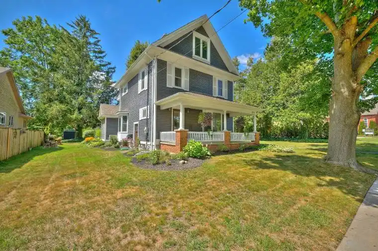 TIMELESS CHARM! Immaculate enchanting 2.5-storey sits on an impressive 97′ x 150′ lot with no rear neighbours – just scenic treed views to relax under your custom pavilion by Limestone Trail (Echo Line) featuring cedar construction with a copper-capped roofline completed in 2024 ($23,057). This completely transformed character home is located in the town of Fenwick with detached natural gas heated (24×44) 1069 sq. feet garage outfitted with a commercial-grade exhaust system and venting with rear shop, 2nd floor storage, designed for versatile space, ideal for a small business, workshop, carpentry, painting, or any trade that requires room to work and thrive. This historic gem has preserved its rich heritage while embracing today’s current style and vibe. Welcoming front covered porch, perfect for morning coffee or evening wine to relax and take it all in. Step inside the main floor as it flows effortlessly, perfect for family living and entertaining. Both 3 piece bathrooms have been fully renovated with lovely glass-tiled showers and modern luxury finishes. The white culinary kitchen, designed by a professional chef himself, features a striking black granite island with seating for four, bringing friends and family together. The second floor offers two spacious bedrooms and 3 piece bath, while the third level reveals a spacious half-story dedicated to the sweeping and serene primary bedroom providing the perfect escape to relax and unwind. Full city services too! Come and explore and imagine the memories you’ll create here! Centennial Park close by offers a vibrant hub of community life complete with full refurbished ammenities like pickleball, multi-sport courts, upgraded washrooms, playground, splash pad, trails, and sports fields -a place where families gather, neighbours connect, and recreation thrives year-round. Come explore this Niagara’s charm with close proximity to schools, famous wineries throughout, golf courses, great restaurants and so much more.