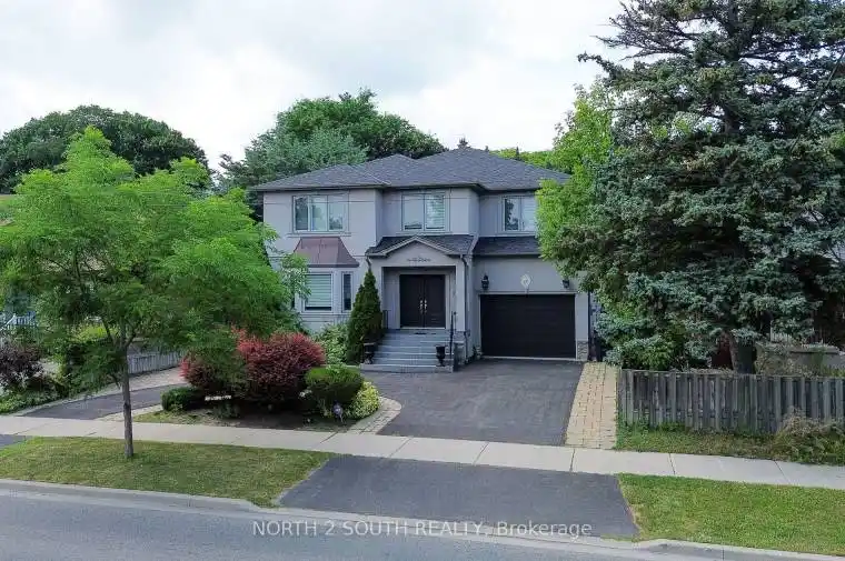 This stunning executive home offers over 5,000 sq. ft. (basement included) of living space on a circular driveway in one of Etobicoke’s prime neighborhoods. The grand entrance leads to a massive foyer with soaring ceilings and a beautiful circular staircase. The main floor features a sun-filled formal living and dining area, a gourmet kitchen with antique white shaker cabinetry, a center island with a built-in cooktop, and a breakfast nook overlooking the backyard oasis with a 16 x 32 saltwater pool and expansive deck. The cozy family room, highlighted by a custom limestone gas fireplace, is perfect for gatherings, while a main floor office accommodates work-from-home needs. Upstairs you will find four oversized bedrooms, each with a full ensuite bathroom and custom walk-in closet. The primary retreat has a walk-out veranda and a spa-like six-piece bathroom with an air jet jacuzzi tub, a large shower, and graffito-featured walls. The second-floor laundry area adds convenience. The professionally finished basement includes an additional bedroom and a four-piece bathroom, ideal for guests or a nanny suite. 5-year new roof, and 3-year-new pool liner. This move-in-ready home is designed for comfort and style-an opportunity not to be missed!