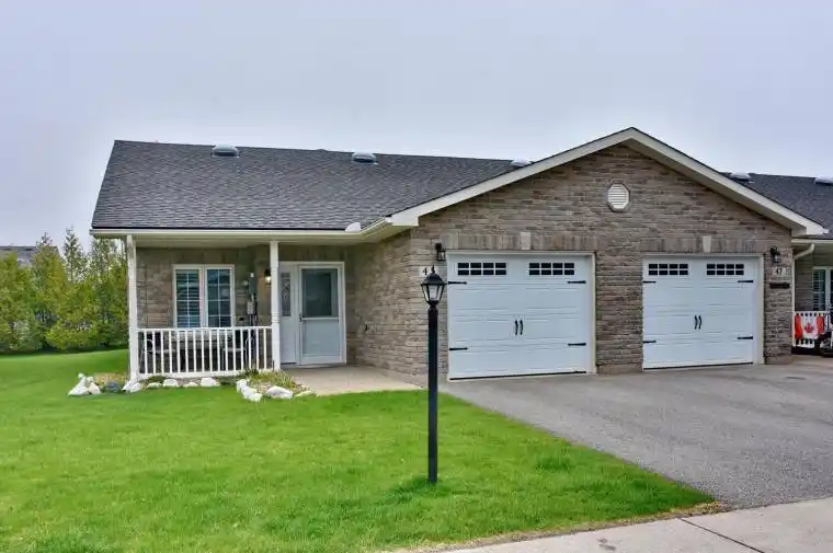 Lovely end unit bungalow in Wasaga Meadows community. Enjoy your coffee on your covered front porch! This open concept home is 1263 sq.ft, with two good sized bedrooms and two baths~ The kitchen has a ton of cupboards and stainless appliances, including a micro/exhaust. A large island offers extra storage and a great spot to hang out and read the paper or enjoy a meal! The living room offers a big patio door walkout to a large concrete patio backing onto trees for extra privacy! There’s a natural gas hookup for your BBQ tool The warm & spacious carpeted primary bedroom boasts a generous walk-in closet and a 3 pc ensuite bath. The 2nd bedroom is at the front with a big window offering lots of natural light, carpeted floors keep you cozy for those winter nights! There’s a main floor laundry with a storage room and a full 4 pc main bath. The garage access is off the front hall, with a garage door opener and remote and lots of upper storage space! The 55+ Parkbridge community provides a beautifully planned neighbourhood with a welcoming environment with lots of amenities and activities for residents. Tons of recreation close by with the new Community Centre with arena, two schools and recreation offerings! Close to the beach, shopping, entertainment and the river! See broker remarks for Parkbridge Land Lease and Maintenance Fees. This isn’t just a home, it’s a lifestyle! Enjoy the freedom of low-maintenance. living & the beauty of retirement near the water!