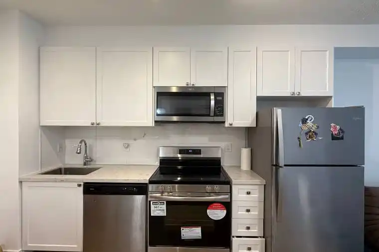 South-East facing 1-Bedroom at Vida Condos (621 Sheppard Ave E). Efficient layout with 9′ ceilings, floor-to-ceiling windows and a private balcony. Contemporary kitchen with stainless-steel appliances; bedroom features a walk-in closet. Prime Bayview Village location steps to Bayview Subway/TTC, Bayview Village Mall, Loblaws, YMCA, dining and parks; quick access to Hwy 401/404. Well-managed boutique building with concierge, gym, party/meeting room & visitor parking.