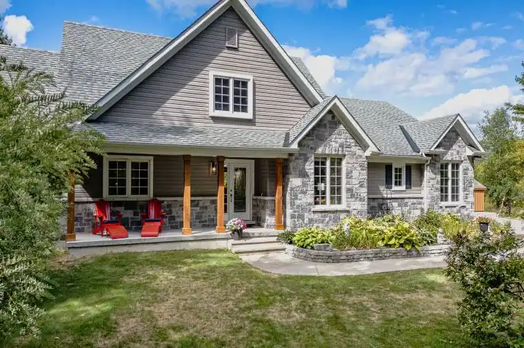 Absolutely stunning 2016 bungalow offering 1925sqft on MAIN FLOOR. Better value than new, this pristine home is in impeccable shape & offers all the expensive updates & features that are extra with new construction. Fully paved drive with parking for 8+ cars, sep. detached dbl garage with hydro, insulated attached dbl garage with electric car charger, 12KW generator, gazebo, storage shed, alarm system, window coverings, appliances, owned HWT, water softener, UV light & much more. Situated on a gorgeous 1.3acre lot, surrounded by trees for the ultimate in privacy. Stunning views of the Moira River out front. Long paved drive with security gate leads to a landscaped front yard offering a variety of fruit trees, walkways & shrubbery. The detached garage & storage shed are perfect for those looking to enjoy space for cars, boats or keep as a workshop. Around back is a relaxing screened-in gazebo overlooking the serene yard & mature trees. A covered front porch welcomes you home & is a great place to enjoy your morning coffee. Inside, this spacious home is full of vaulted ceilings & offers a well laid out, open floor plan including a 240sqft 4-season sunroom. In the centre of the home is a cozy living rm, highlighted by a floor to ceiling gas F/P with tile mantel AND tall vaulted ceiling with decorative wood beams. Kitchen boasts beautiful grey cabinets to the ceiling featuring crown moulding & wine rack. Other kitchen features incl: large walk-in pantry, granite counters, tile backsplash, peninsula island with seating & formal dining rm. Spacious Primary suite also has a vaulted ceiling plus large WIC with shelving & spa-like ensuite bath with dbl sinks, quartz counters, separate toilet area & walk-in glass/tile shower. 3 bdrms on main floor (front bdrm used as office) & 2 full baths. Other features incl: solid Ash hdwd flooring, nat. gas heat, C/Air, M/F laundry with sink, R50 insulation in attic, stone & vinyl exterior & drilled well producing 15GPM. Move right in.