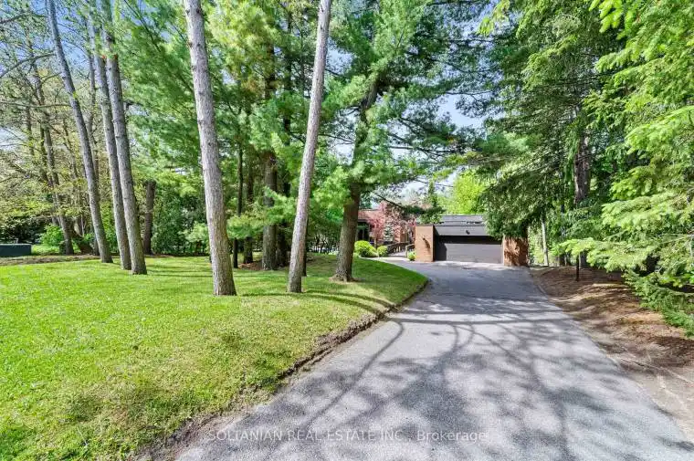 Welcome to 18 Old English Lane, a remarkable estate designed with vision and craftsmanship, set on a breathtaking 1-acre ravine lot in the prestigious Bayview Glen community. Inspired by the principles of Frank Lloyd Wright, this architectural gem blends seamlessly into its wooded, offering total privacy and serenity on one of the most prestige streets in Thornhill. This expansive residence boasts an elegant circular driveway, resort-style amenities including a stone deck, TENNIS COURT & OUTDOOR POOL, and mature & manicured landscaping that frames the home with natural beauty backing to the ravine. Inside, soaring floor-to-ceiling windows flood the grand principal rooms with natural light and offer stunning views of the lush backyard. The spacious family room features a wood-burning fireplace and custom built-ins, wet bar while the library offers a quiet retreat with rich millwork and private access to the primary suite. The chef-inspired kitchen is equipped with premium appliances and a large eat-in area ideal for family gatherings. The luxurious primary suite includes its own private balcony overlooking resort like backyard with swimming pool and tennis court, spa-like ensuite bath, and dual walk-in closets. Upstairs, with a skylight & four additional bedrooms include built-in closets and two semi-ensuite bathrooms, providing comfort and functionality for a growing family. The fully finished lower level with separate entrance/ new flooring is designed for entertaining and relaxation, featuring a large recreation room, 2 bedrooms, a spa zone with cedar sauna, and a powder room. A rare offering in an unbeatable location minutes from Bayview Golf & Country Club, top-rated public and private schools, parks, trails, transit, and highways.
