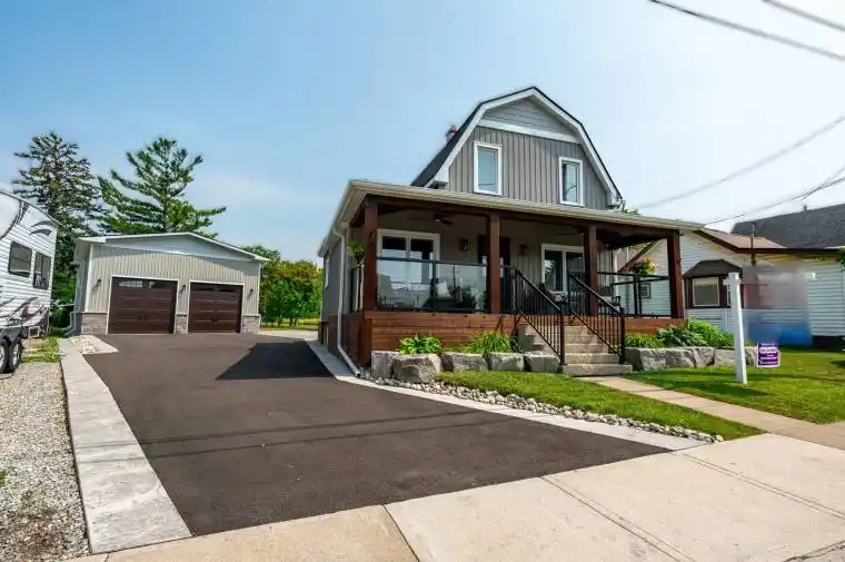 Step into this stunning, fully renovated two-storey modern farmhouse where timeless charm meets thoughtful upgrades. The heart of the home is a chefs dream kitchen, boasting a gorgeous statement piece wood island countertop, stone backsplash, stainless steel appliances, and clever storage throughout. A functional dining and living spaces perfect for entertaining – all finished in fresh, neutral tones. Enjoy peace of mind with major upgrades completed: home security camera system, 200 amp panel, gas furnace and A/C (2020), windows (2020), roof (2021), bathroom vanities and shut-off toilets (2021), CO/smoke detectors in all bedrooms and halls (2022), and a rented hot water tank (2023). The basement was fully waterproofed in 2023, including a sump system and battery back-up. The exterior shines with a new concrete border and asphalt driveway (2025), and a 250 foot deep lot with a shed, fire pit, and entertaining space. The crown jewel is the detached pull-through garage, with oversized 10×10 bay doors with high lift tracks and wall mount openers. 16 tall walls make it ideal for a car hoist or car stacker, forced air furnace and radiant heated floors, a versatile entertainment loft, featuring a gym, 3pc bathroom, kitchenette, and spacious rec area – ideal for hosting game nights or relaxing in style. This move-in ready home is a rare combination of quality craftsmanship, updated systems, and exceptional lifestyle potential. A must-see opportunity!