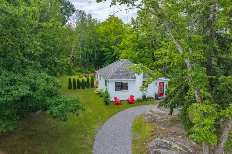 Welcome to 1011 United Church Rd, a charming 984 sq.ft., 2-bedroom, 1-bath home that beautifully blends modern comfort with rustic warmth, just steps from Lake Joseph and The Cove Marina. A welcoming foyer leads to a spacious, open-plan living area, perfect for entertaining. The modern kitchen is a dream, featuring a high-end stainless-steel range, a retro fridge, and a custom backsplash. Throughout the home, rich acacia hardwood floors, contemporary windows, and interior shiplap create a cozy atmosphere, complemented by a gorgeous bathroom updated in 2021 with a luxurious rain shower. You can also enjoy the outdoors from the inviting 3-season Muskoka room, which offers stunning views of the surrounding woods and granite outcroppings. The backyard is a private oasis, ideal for relaxing in the hot tub (2022) or gathering around the fire pit and barbecue area. The property is equipped for year-round living with baseboard heaters and smart thermostats, which, along with an electronic keypad lock, allow for remote monitoring of heat and access, providing peace of mind. Additional updates include the electrical system and roof shingles, both from 2020. This home is ideally situated across the road from The Cove Marina for easy boat access to Lake Joseph and is just minutes away from fine dining, shopping, golf, and spas. This home is best seen to be fully appreciated!