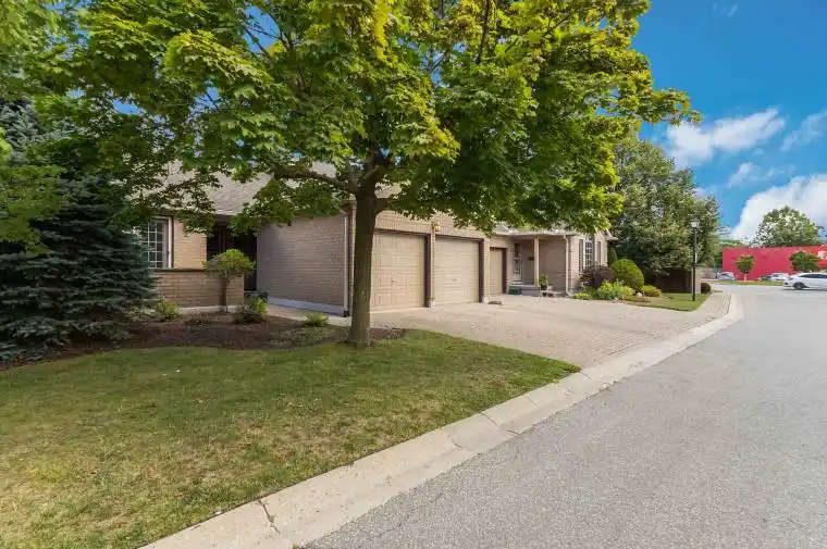 Welcome to stylish bungalow living in this 2+1 bedroom, 3 full bathroom condo, blending comfort, accessibility, and thoughtful updates. Quietly tucked away near major amenities, the home features a double attached garage with parking for four, a covered front porch, and a private courtyard that set the tone before you even step inside. The bright eat-in kitchen offers generous cabinetry, plenty of counter space, and a built-in desk nook. The open dining and living room are filled with natural light, highlighted by a cozy corner gas fireplace and walkout to the rear deck perfect for quiet evenings or entertaining friends. The main floor is complete with convenient laundry, two bedrooms including a spacious primary suite with custom walk-in closet and private ensuite, plus a second full bath with a sleek zero-clearance glass shower. The lower level is a true retreat, featuring a South American inspired rec room with a full bar, built-in cabinetry, fireplace surround, and included TV. Warm and inviting, its a space that feels both unique and perfect for hosting memorable gatherings. A third bedroom and full bathroom make it ideal for guests, while a bonus fitness room, workshop, and abundant storage add flexibility. Recent updates include a new furnace, modern light fixtures on the main floor, and fresh paint throughout. Move-in ready and full of character, this bungalow offers a lifestyle as easy as it is enjoyable.