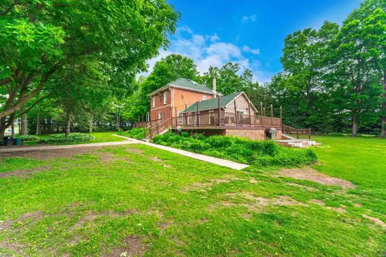 Exceptionally Rare and Hard-to-Find Property Offering Approximately 48 Acres and Over 32 Parking Spaces This unique estate features a total of 5+ bedrooms and 4 bathrooms, complemented by 2 fully equipped kitchens, distributed across a detached residence and two additional buildings. The detached home is a charming 3-bedroom, 2.5-bath residence that has undergone recent renovations, including a new bathroom, hardwood and ceramic flooring, an expanded family room, and a fully upgraded kitchen outfitted with stainless steel appliances, a large center island, and Corian countertops. Building #1 offers 2 bedrooms, 1 full bathroom, a living room, and an upgraded kitchen with all appliances included, along with a bar area. Additional features include heated flooring, a new rental hot water tank, a separate water well, and well-maintained systems. Building #2 comprises two spacious warehouses (each approximately 60 x 31) with separate driveway access, dual 12 x 12 doors, 200-amp electrical service, gravel floors over concrete slabs, a wood stove, and additional storage space .Approximately 29 acres of this prime agricultural land are currently leased to a tenant farmer, providing an excellent opportunity in a sought-after area near Orangeville.