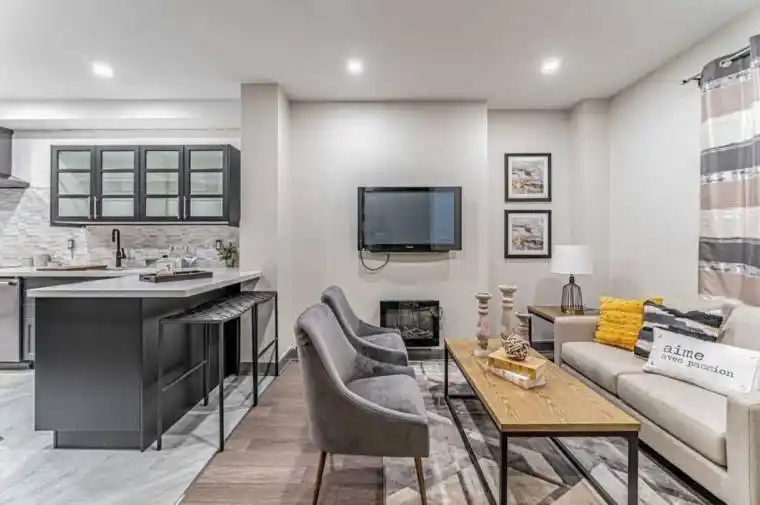 Welcome to this elegant FULLY FURNISHED 4-bedroom, 4-bathroom townhouse near Church St. & College TTC Station, offering 3 spacious levels of living. The ground floor features a modern open-concept kitchen with quartz countertops, designer cabinets, and high-end appliances, seamlessly connected to the living/dining area, plus a den/office space and walk-out to a private outdoor deck. The second floor boasts two generously sized bedrooms with ensuite bathrooms, while the third floor offers two more bedrooms with a shared bath and convenient in-unit laundry. All bedrooms are bright and spacious, with premium finishes throughout including quartz counters, designer cabinetry, and a unique skylight ceiling on the upper level. Ideally located steps to Toronto Metropolitan University, U of T, Eaton Centre, Yorkville, subway, restaurants, and cafes. Perfect for young professionals, students, or small families. Available immediately!