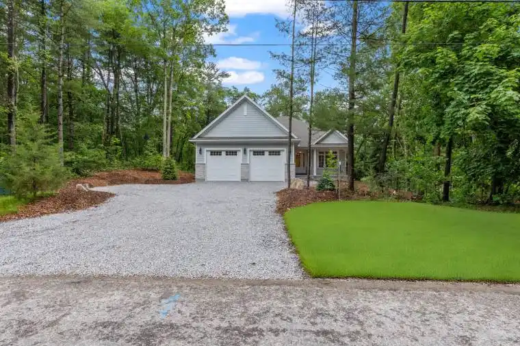 This coastal-inspired luxury home offers every imaginable amenity and is currently under construction by Spheero Homes. Nestled in the trees, this 3+2 Bed home boasts over 3740 sq ft of finished expertly designed living space. As you approach the property, take in the beautiful curb appeal and serene surrounding. Enter through the front door into the grand foyer featuring 10ft ceilings and custom oak bench through to the open concept main level including generous kitchen boasting custom high-end cabinetry and countertops, island with breakfast bar, hidden prep area with additional sink and pantry; dinette with access to the backyard and covered porch; bright great room with soaring vaulted ceiling, and cozy gas fireplace with custom surround and mantle; convenient main floor laundry/mud room with custom storage and bench; 3-piece bathroom; & 3 spacious bedrooms including primary suite with box tray ceiling, walk-in closet, & spa-like ensuite with double sinks and tiled shower with glass enclosure. The fully finished lower level boasts an additional 2 beds, 2 baths, family room and potential bonus room. Enjoy the sights and sounds of nature on your covered front porch or on the 432 sq ft covered porch at the rear of the property. Features include: fully insulated 27’x26′ garage with oversized 10’x9′ doors, side mount garage door openers, hardwood flooring throughout main level and basement (excluding bedrooms, baths and flex basement room), heated floors in all bathrooms, oversized basement windows, 8’10” foundation walls for high basement ceiling, gutter guards, wifi controlled radiantin floor heat in garage, basement and rear porch, gas line for stove & BBQ, Lennox HVAC with steam humidifier, boiler with on demand hot water & more! Wiring roughed in for: future hot tub, future EV charger, 2 ceiling fans on rear porch, theatre & security systems. Rear cedar hedge with privacy fence. A must see home where no detail was missed!