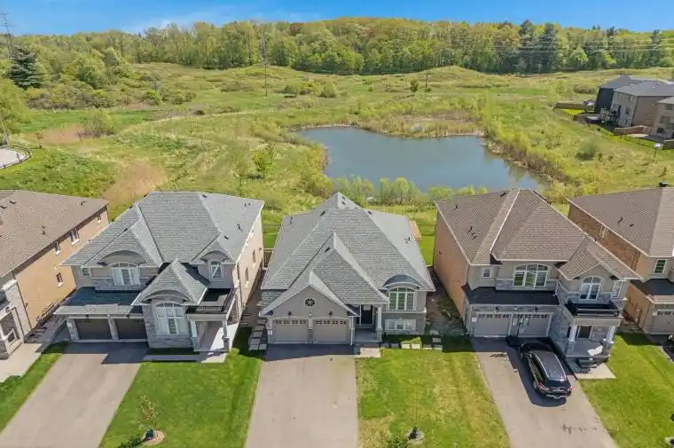 Raised Bungalow with Legal Walkout Basement Apartment Overlooking the Pond in Sought-After Tiffany Hills. Built in 2021, this beautifully maintained raised bungalow sits on a premium lot with scenic views of the pond. The main level features 10-ft ceilings and a spacious great room with a gas fireplace, soaring cathedral ceiling, and pot lights for a warm, inviting ambiance. The upgraded kitchen offers granite countertops, an island with a breakfast bar, and extra storage beneath. The main floor includes 2 generous bedrooms, 2 full bathrooms, a separate laundry room, and a well-designed functional layout that maximizes space and comfort. The legal walk-out basement apartment is bright and fully finished, offering a large open-concept living/dining area, 2 additional bedrooms, 1 full bathroom, its own laundry, and ample storage. All rooms feature large above-grade windows, filling the space with natural light. An ideal setup for multi-generational living or rental income in a highly desirable neighbourhood!