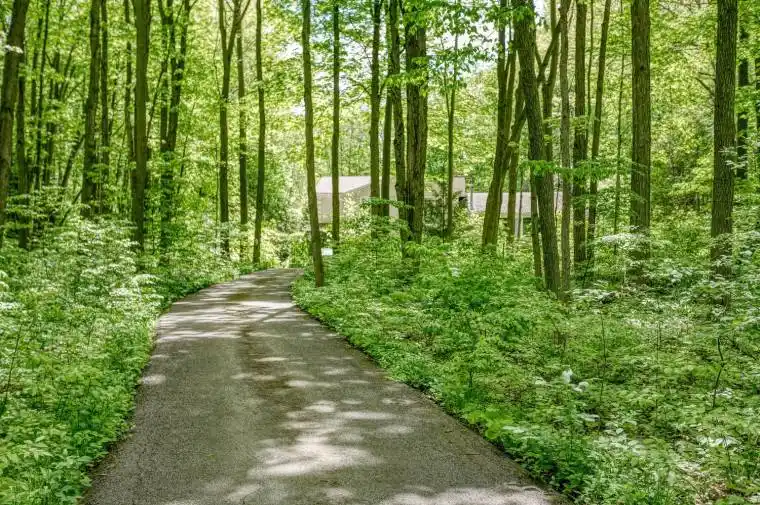 Tucked away behind a controlled, gated entrance, a long, winding & naturalized paved driveway, leads you to this exceptional residence completely hidden from the road! The journey itself is an introduction to the tranquility that awaits. This is truly an exceptional retreat, where privacy and nature converge. A portico graces the front of the home, complementing the beautifully manicured front landscaping, a nature’s paradise where deer, birds & local wildlife roam freely. Step inside and immediately experience the seamless connection to the outdoors; every window offers a captivating view, creating the sensation of being surrounded by nature. This masterfully renovated home boasts an open-concept design, allowing an unobstructed sightline from the front door straight through to the private backyard oasis. All four levels have been meticulously upgraded with exquisite attention to detail, featuring solid wood trim, baseboards & most doors throughout. Cozy evenings await with fireplaces in the living room & formal dining room, AND a luxurious two-way fireplace gracing the primary bedroom suite. Currently configured as a two bedroom, with spa-like bathrooms, this home effortlessly offers the potential to convert back to a three bedroom family residence. The heart of the home, a recently updated AYA kitchen, is a culinary dream! It showcases gleaming Quartz countertops, built-in appliances, abundant cabinetry, a convenient built-in breakfast bar & a large center island with ample seating. The cozy formal dining room on the ground floor provides a walk-out to the breathtaking backyard. Outside, the property is a private haven designed for relaxation & enjoyment. Delight in multiple landscaped seating areas, a charming firepit for cozy gatherings & perennial gardens that require minimal maintenance, leaving very little grass to care for. This is more than a home; it’s a lifestyle a rare blend of refined living and natural serenity.