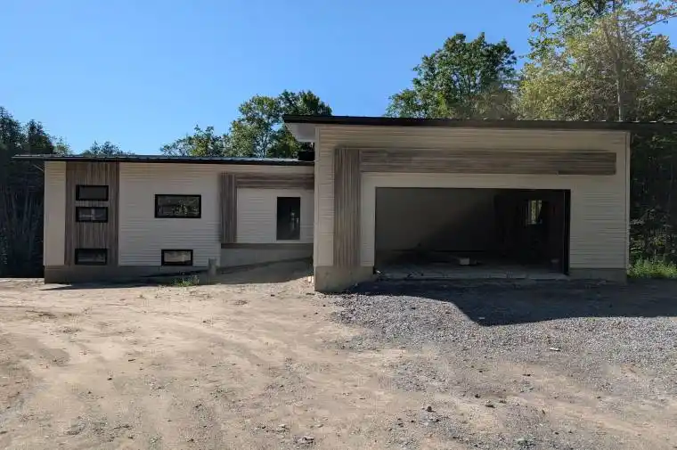 Welcome to this bright and contemporary bungalow, perfectly set on a stunning wooded 1.93 acre lot in one of the areas most sought-after neighborhood’s. This brand-new build combines modern design with high-quality finishes and the peaceful charm of a private, treed setting. The home features an open-concept floor plan with soaring vaulted ceilings and beautiful hardwood flooring throughout the main level. Large windows fill the space with natural light, while the spacious living and dining areas flow seamlessly to the kitchen and out to the large covered rear deck ideal for relaxing and entertaining while surrounded by nature. Offering 2 bedrooms and 2 bathrooms (there is also a 3rd bath plumbed in the basement), including a luxurious ensuite, this home is thoughtfully designed for comfort and style. The full walkout basement provides excellent potential for additional living space, hobbies, or storage. An attached two-car garage, high-efficiency furnace, and central air conditioning ensure convenience and efficiency year-round. A rare opportunity to enjoy contemporary living in a private, wooded setting this home is nearing completion and has a full Tarion Warranty. This Modern Country Hideaway is waiting for you!