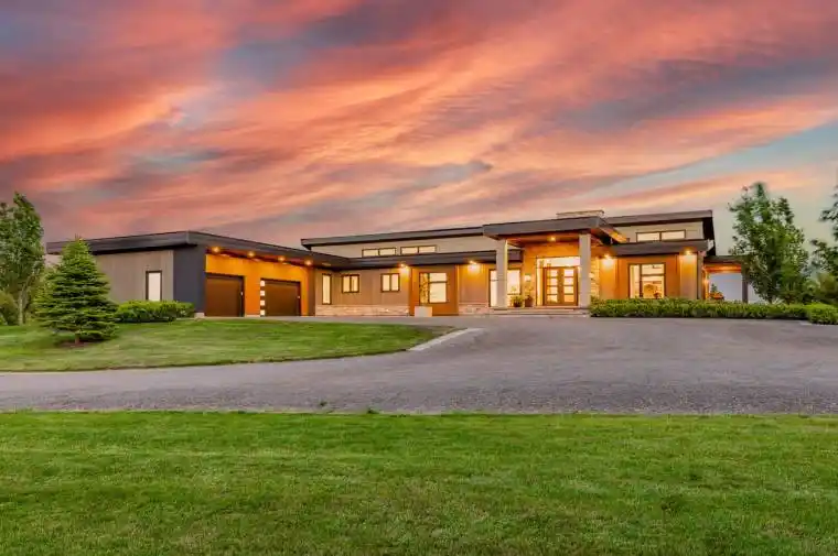 Welcome To 807 Ganton Road. This Stunning 4 + 2 Bedroom, 5 + 1 Bathroom Ranch-Style Bungalow Offers Over 7,200 Sq. Ft. Of Finished Living Space On A Picturesque 9.3-Acre Lot. Inside, You’ll Find Soaring 18-Foot Vaulted Ceilings, White-Oak Flooring, And A Thoughtfully Designed Layout Filled With Natural Light And Scenic Views Of The Surrounding Farmland. At The Heart Of The Home Is A Chefs Kitchen Featuring A Massive 12.5-Foot Quartz Island With Seating For Six, Custom Adamo Cabinetry, A Built-In Thermador Fridge And Freezer, Two Built-In Jenn Air Beverage Fridges, A Breakfast Bar, And A Butlers Pantry Equipped With A Second Sink And Built-In Dishwasher Ideal For Both Entertaining And Everyday Convenience. The Kitchen Opens To A 3-Season Sunroom Overlooking Rolling Fields, Offering A Serene Place To Relax. The Spacious Family Room Boasts 18-Foot Vaulted Ceilings, A Cozy Fireplace, Three Walkouts To The Rear Deck, Automatic Window Coverings, And Panoramic Views Of The Property. The Primary Bedroom Is A True Retreat With Vaulted Ceilings, A Fireplace, A Walkout To The Deck, Two Walk-In Closets, And A Luxurious 5-Piece Ensuite With Double Vanities. The Walkout Basement Is Designed For Entertaining, Featuring A Full Wet Bar With Ample Cabinetry, A Bar Fridge, A Keg Fridge With Built-In Tap, And A TV. You’ll Also Find A Dedicated Home Theatre With Built-In Surround Sound, A Professional Office, And A Spacious Gym. A Separate 2-Bedroom, 1-Bathroom Coach House Adds Extra Living Space Perfect For Guests, Extended Family, Or Potential Rental Income. Included is a 22 Kilowatt Generac Generator That Ensures The Home Never Experiences A Blackout. Current Zoning Allows For Home Occupation or Home Industry. Just Minutes From Town, This One-Of-A-Kind Estate Blends Luxury and Privacy In A Truly Exceptional Setting.