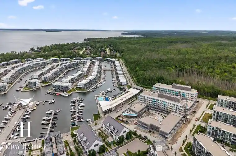 3-Bedroom Corner Unit in Sunseeker, Friday Harbours Newest Luxury Condo. Welcome to Sunseeker, Friday Harbours premier new condominium development, where modern design meets the natural beauty. This bright and spacious 3-bedroom corner unit offers 990 sq. ft. of thoughtfully designed living space, perfectly positioned to overlook the tranquil nature preserve. Enjoy breathtaking sunset views from your private balcony the perfect way to unwind at the end of the day. Key Features: 3 Bedrooms | 2 Bathroom | 990 sq. ft. of contemporary living space. Corner unit with abundant natural light and stunning views2 dedicated parking spots + 1 storage locker. Open-concept kitchen and living area ideal for entertaining. In-suite laundry, Resort-Inspired Amenities: State-of-the-art golf simulator room; Private movie theatre room; Outdoor pool and hot tub oasis; Lush landscaping and walkways throughout the community. Located just moments from the heart of Friday Harbour, Sunseeker offers an unbeatable combination of luxury, convenience, location, and connection to nature. Whether you’re looking for a serene year-round residence or a weekend getaway, this is the one you’ve been waiting for.