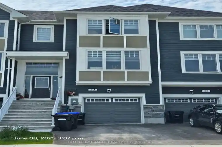 Stunning one year old executive townhome in East Wasaga Beach! Welcome to 30 Lana Circle, offering nearly 1,800 sq. ft. of beautifully finished living space across 3 levels. This 3-bedroom, 3-bath home combines modern luxury with everyday functionality perfect for families or professionals. Enjoy a bright open-concept main floor with 9 ft ceilings, oversized windows, and 8 ft sliding doors to a spacious deck. The gourmet kitchen features tall cabinetry, a 10 ft breakfast counter, dinette area. Lower level includes a versatile family room with walkout door to backyard future Deck and convenient powder room. The primary suite boasts a 4-pc ensuite and large walk-in closet. Two additional bedrooms, upper-level laundry, and generous linen storage complete the home. Back patio w/unobstructed views, Tarion Warranty, Never lived in, high efficient gas furnace, great east end for commute, near shops/professional/medical offices, neighborhood golf course, playgrounds, visitor parking, lovely streetscape/curb appeal One Of The Most Desirable Location In Wasaga Beach With Steps To Large Future Park and Short Drive To Downtown District Where Offers Plenty Of Shops, Foods And Fun!