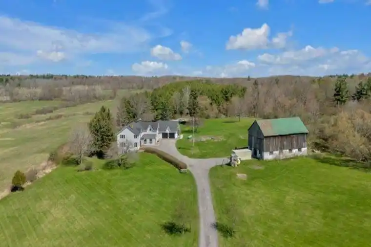 Rural living at its finest! This stunning country estate is only minutes from Gananoque and a15-minute commute to Kingston and offers the perfect balance of tranquility and convenience. Situated on over 80 acres of peaceful countryside, its an ideal setting for ATV adventures, horseback riding, snowmobiling, nature watching, hunting, or simply enjoying time with family. A long, tree-lined paved driveway leads to the home, set well back from the road for added privacy. The land features a private pond, scenic forested areas of hardwood and cedar, and winding trails that offer abundant wildlife and natural beauty. The spacious home showcases grand principal rooms and oversized picture windows that frame the surrounding landscape. With four bedrooms and four bathrooms, there’s plenty of room for the whole family. A large country kitchen, formal dining area, family room with stone fireplace and bright sunroom provide warm, inviting spaces for entertaining and everyday living. The expansive primary suite features a walk-in closet and a 4-piece ensuite. Additional features include an attached double-car garage with inside entry and a finished flex space above ideal for a home office, in-law suite, or extended family living. The lower level offers a bonus recreation room with walk-up access to outside, and a sauna for unwinding after a long day. Afterwards step out onto the back deck and take in the peaceful views of open meadows. Adding to the charm is a 30′ x 58′ century barn, ready for a variety of uses from hobby farming to event space. A rare blend of elegance, privacy, and versatility perfect for equestrians, outdoor enthusiasts, hobby farmers, or anyone seeking peace without sacrificing proximity to town. Don’t miss your chance to own this one-of-a-kind estate. Book your private showing today!