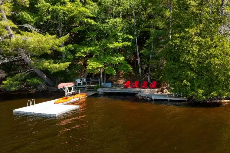 Nestled at 148 Golden Pheasant, this stunning turnkey property offers unparalleled access to the serene waters of Fairy Lake, with over 40 miles of boating through Huntsville’s picturesque lake system. Enjoying all municipal services, including town water & sewer and natural gas. This home has undergone extensive renovations in the last 6 years. Highlights include a new kitchen, updated windows, and luxurious bamboo flooring throughout. Noteworthy upgrades by the current owners, which amount to over $50,000, include glass railings, a new staircase, & updates to the stairs leading to the water, as well as the lower level suites complete renovation. The main floor boasts a sophisticated home office/library, a cozy den with a decorative wood fireplace, and a sunlit living room with soaring ceilings and a natural gas fireplace. Step outside onto extensive decking from both the living and dining areas, perfect for seamless indoor-outdoor living. The chef’s kitchen, complete with stainless steel appliances and eco-friendly countertops made from a resin walnut combination, flows into the dining space. Additionally, the main floor features a convenient powder room and laundry room. Upstairs, discover a luxurious primary suite with a private balcony, walk through closet, & 3 piece en-suite, along with two more spacious bedrooms and a 4 piece guest washroom. The lower level offers a complete and private bedroom suite with its own outside entry, along with another 3 piece washroom and ample storage space. Enjoy coveted southwest exposure on the waterfront, boasting long lake views, shallow entry, and a private dock. Elevated positioning affords exceptional privacy amidst lush foliage, creating a tranquil woodland retreat. With easy access to Huntsville’s amenities by boat or car, along with proximity to golf and skiing, this remarkable year-round home or cottage epitomizes the best of both worlds.