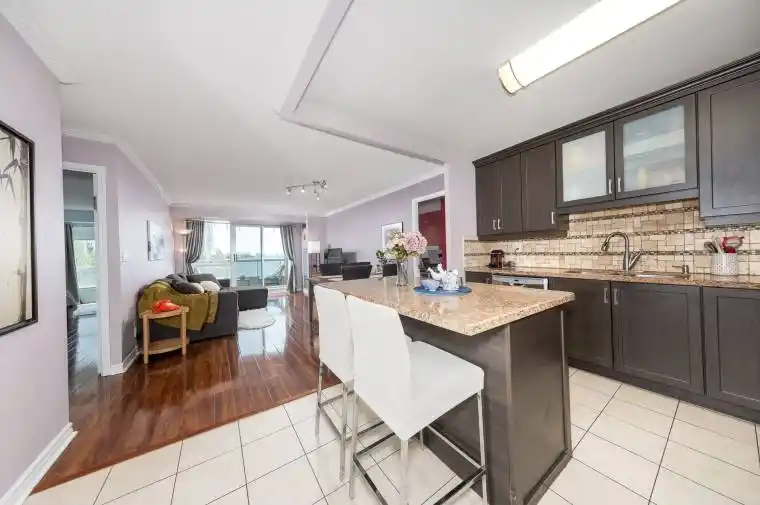 Quiet Boutique Condo In Prime Thornhill Area. This 1,110 SF, Spacious 2 Split Bedroom 2 Bath Unit Features Open Concept, Perfect Layout. Gourmet Kitchen With Huge Granite Centre Island And Countertop, Ample Storage. Brand New Washer/Dryer In 2025. Both Bedrooms Have Walk-In Closets And South Facing Large Windows. Maintenance Fee Include All Utilities Plus High End Package Cable Tv And Internet. Well Managed Building With Gym, Party Room, Sauna And Visitor Parkings. Vivrant Atmosphere With Everything You Need Such As Public Transit, Viva Terminal, Library, Parks And Schools. Promenade Mall, Walmart, Winners, No-Frills, Restaurants, Too Many To List.