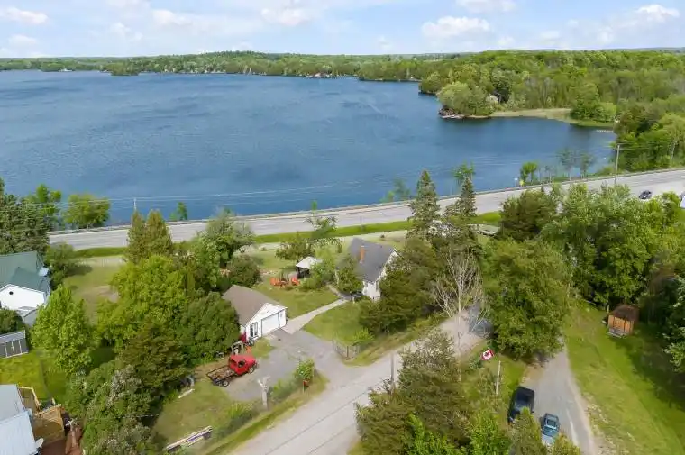Watch the sun rise each morning over the peaceful Beaver Lake as you enjoy your coffee and reflect on your day ahead. This cottage-like home is great for small families just starting out or someone who is ready to retire. With just over 1000 sq ft, this cozy 3bedroom, 1 bath home features a classic cottage vibe but with year round living. The main level features newly installed waterproof vinyl flooring throughout, some new windows and doors and some new wall finishes. (a complete list of updates available upon request- Trim around the front door and window will be completed before closing).Upstairs features 2 small rooms accessed through a 3rd bedroom that is currently set up as a home office. This home has an unobstructed view of the south side of Beaver Lake that can be enjoyed all year round whether fishing, boating, or just enjoying the water. There are plenty of lilac bushes, fruit trees and perennial flower gardens outside in the spacious yard as well as an area previously used as vegetable garden. The detached garage also has a separate workshop area in the back with plenty of windows to take additional advantage of the lake view. Easy access to the 401 or Hwy 7-both about 20minutes away in either direction. The Beaver Lake Beach as well as the boat launch are both directly across the road or you can access White Lake a couple of minutes away on County Road 13. Hungry? Easy access to the Lakeview Tavern across the road for a bite to eat (open year round), or a quick drive to Tamworth for all other essentials such as the LCBO, Pharmacy, Grocery and Hardware stores. This landscaped backyard is a tranquil retreat waiting for you to enjoy- perfect for summer barbecues with kids running around the yard, cozy evenings around the fire pit, or simply unwinding with a good book under the old apple tree.