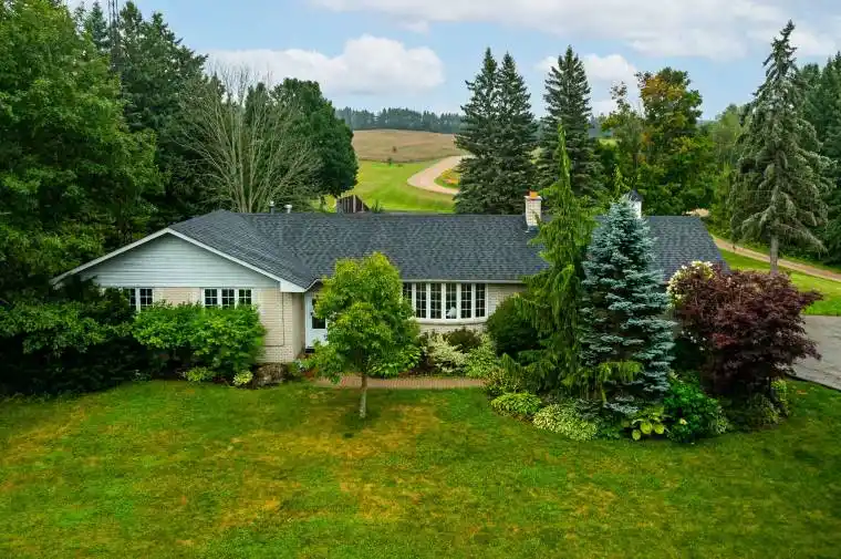 Endless Possibilities!!!! Spacious walkout bungalow on over 14 acres in Mono, offering close to 3000 total sq ft of finished living space with five bedrooms, two bathrooms, and a walk-out basement out to the massive heated Saltwater pool and deck area! Recent updates include quartz counters, new flooring, and fresh paint throughout. The property stands out with a large saltwater pool for outdoor enjoyment, a versatile barn with income generation and 10 stalls, additional large 50×30 shop space with multiple uses, and wide-open acreage featuring fenced paddocks, a half-mile racetrack, outdoor hockey rink and a spring-fed pond, paddock space. Located on a paved road just minutes to Orangeville this home combines modern living with exceptional rural potential.