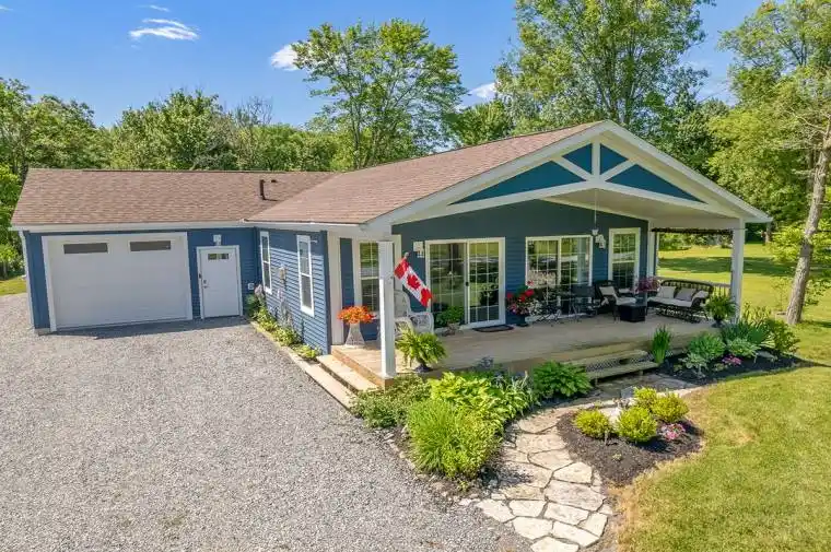 Nestled in the sought-after Silver Bay community along the shores of Lake Erie, 3545 Firelane 7 is just 5 years old. This bungalow offers deeded access to a private sandy beach only a short walk down a tree-lined pathway. Set on a quarter-acre lot, the home greets you with a spacious covered porch featuring post-and-beam inspired design. Inside, you’ll find 1,300 sq. ft. of thoughtfully designed living space where those same warm accents continue. Double sliding doors from the front porch open to an airy, open-concept living room, dining area, and kitchen. A gas fireplace creates a cozy focal point, while the kitchens centre island with its wood plank countertop adds rustic charm. At the back of the home, a large screened room extends your living space outdoors. The main floor includes two bedrooms plus a third room currently used as an office. The primary suite features an ensuite bathroom, walk-in closet, and sliding doors leading directly to the screened room – ideal for enjoying the blend of indoor and outdoor living.The full, partially finished basement adds flexibility, offering a recroom area, an additional bedroom space, and a bathroom with a relaxing jetted tub.Outdoors, a concrete patio shaded by a sunsail leads to beautifully landscaped gardens and raised beds, kept lush by a timed irrigation system. A matching garden shed with power and lights provides both charm and convenience.The attached garage is insulated, heated, and versatile, with front and back garage doors that allow passthrough access or use as a breezeway.Practical features include municipally monitored Silver Bay Water (May to October), a 5,500-gallon cistern for year-round use, a hookup for a wired-in generator, and Bell Fibe connectivity. 3545 Firelane 7 offers the perfect balance of beach area retreat and modern comfort ready to welcome you home.