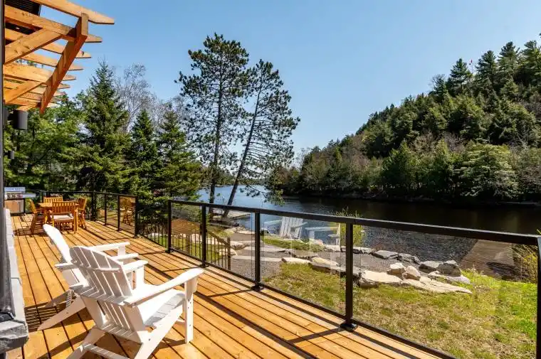 Absolutely impeccable 2023 build in downtown Huntsville, situated on the Muskoka river near the mouth of Fairy Lake. This exceptional home boasts an ICF foundation, ensuring superior insulation & energy efficiency. The main floor is a stunning open-concept space featuring a gorgeous kitchen equipped with high- end stainless steel appliances, luxurious quartz countertops, & ample storage & counter space. The oversized island, complete with an extended breakfast bar, serves as the heart of the home, perfect for casual dining & entertaining. A wall of windows floods the area with natural light, highlighting the elegant living room adorned with a beautiful natural gas fireplace, creating a warm & inviting ambiance. Ascend to the 2nd floor to discover 3 generously sized bedrooms, each thoughtfully designed with its own ensuite. The primary suite is a true retreat, featuring another natural gas fireplace, a luxurious 4pc ensuite, & a spacious walk-in closet, offering a serene & comfortable space to unwind with stunning views of the river. Additionally, a conveniently placed laundry room on the 2nd floor adds to the home’s functional layout. Step outside from the main floor living room onto your expansive deck, featuring sleek glass railings designed to preserve your view of the picturesque surroundings. The property gently slopes down to the river, where you can enjoy swimming or embark on boating adventures with access to over 40 miles of boating through the Huntsville 4-chain lake & river system. The landscaping has been thoughtfully initiated, showcasing a beautiful retaining wall at the water’s edge, a designated area for a cozy fire pit, and stunning stone steps leading to the water. This home is ideally located within walking distance to downtown Huntsville, offering easy access to all the great amenities, shops, & vibrant events the town has to offer. Embrace the perfect blend of luxury, convenience, & natural beauty in this remarkable riverfront property.