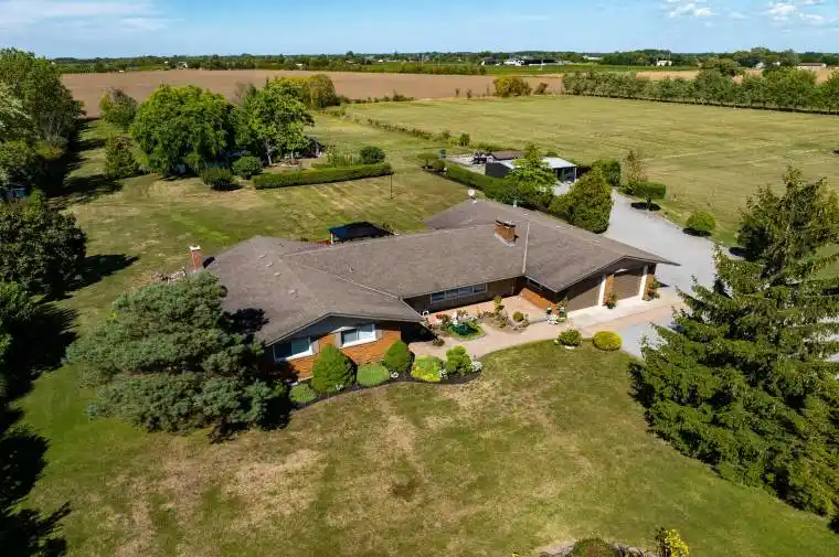 Welcome to 726 Line 7 Road a private 3-acre retreat in the heart of Niagara-on-the-Lakes wine country. Offering over 3,800 sq. ft. of finished living space, this spacious bungalow is designed for both everyday comfort and large-scale entertaining.The main floor boasts a bright primary suite with 2-piece ensuite, two additional bedrooms, a stylish 5-piece bath, formal dining room, living room, kitchen, mudroom, and cozy family room. A sun-filled solarium and expansive deck extend the living space outdoors, overlooking manicured gardens, lush lawns, and a serene fish pond.Two staircases lead to a fully finished lower level featuring a massive recreation room, den, workshop, and laundry. A detached garage/workshop and an oversized driveway with parking for 30+ vehicles make this property ideal for hosting gatherings of any size.Set in a beautiful and private location, youre minutes to award-winning wineries, championship golf, the Niagara Parkway, Canadas largest outdoor shopping centre, top schools, and quick highway access. This is the perfect blend of tranquility, convenience, and lifestyle.Make this exceptional property your forever home in Niagara-on-the-Lake.