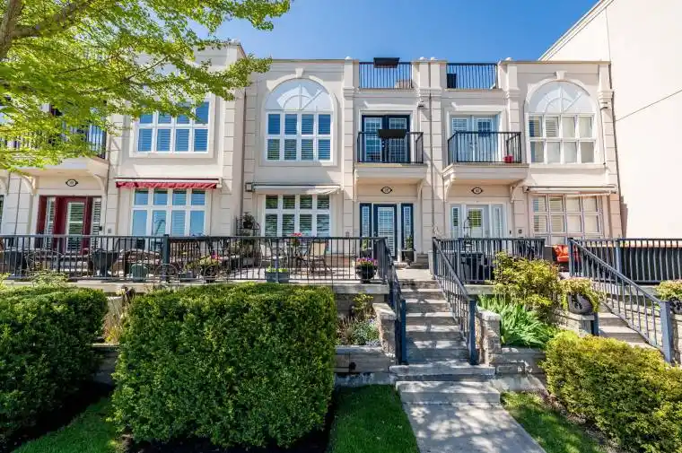 This is your chance to own a true waterfront lifestyle without giving up the freedom of freehold ownership. Perfectly located steps from Cobourg’s marina, beach, and downtown, this stunning townhouse is one of only a handful of its kind, offering over 2,000 sq ft of stylish living with unbeatable walkability and panoramic lake views. Enjoy three private outdoor spaces: a welcoming front terrace, a Juliette balcony off the primary suite, and a rooftop terrace where Lake Ontario is your backdrop for morning coffee or evening gatherings. Inside, natural light fills the open-concept main floor featuring a gas fireplace, floor-to-ceiling windows, and a kitchen with built-in appliances and breakfast bar. The spacious dining area is perfect for entertaining or could easily double as a cozy den or home office. Upstairs, the primary suite includes a walk-in closet, ensuite, and French doors to the Juliette balcony. Two additional bedrooms, a full bath, and laundry complete this floor. The top level is a retreat of its own, with a family room, 3-piece bath, and walkout to the rooftop terrace. Recent updates include front windows and doors plus a replaced garage roof. Best of all, for approx. $140/month(POTL) your snow removal and lawn care are handled giving you the ease of condo-style living without paying todays rising condo fees. This home is perfect for families, professionals, or downsizers seeking a rare blend of low maintenance living, breathtaking views, and a location that brings the very best of Cobourg right to your doorstep.