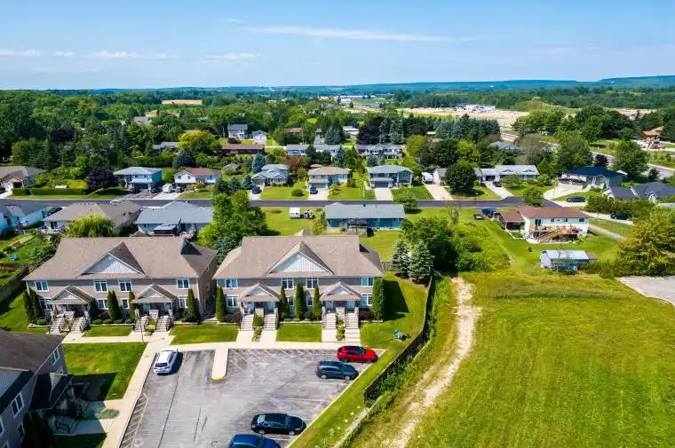 Embrace the magic of winter in this beautifully appointed 3-bedroom, 2-bathroom end-unit townhome, perfectly located in the picturesque town of Meaford. Offering a blend of modern comfort and cozy charm, this seasonal rental comfortably sleeps up to 8 guests and is the ideal retreat for families or small groups looking to enjoy the best of winter in Southern Georgian Bay. The main floor welcomes you with a bright, open-concept layout. The well-equipped kitchen features sleek stainless steel appliances and plenty of cupboard space. The dining area flows into a spacious living room with soaring cathedral ceilings, a cozy gas fireplace, and a walkout to a private balcony- perfect for enjoying your morning coffee or a quiet moment in the fresh, snowy air. Upstairs, two generously sized bedrooms and a modern 4-piece bath offer a peaceful place to unwind after a day on the slopes or exploring the charming local area. The fully finished lower level provides even more space to relax, including a large family room with a king-sized pull-out couch, a second bathroom, and a full laundry area for added convenience. Just minutes from the stunning shores of Georgian Bay and the vibrant shops and restaurants of downtown Meaford, this townhome puts you close to local ski hills, snowshoeing trails, and all the seasonal activities the region has to offer. Additional features include one assigned parking space, designated visitor parking, and a private outdoor storage shed for your gear. Enjoy low-maintenance living in a quiet, friendly community while creating unforgettable winter memories in this inviting Meaford getaway.
