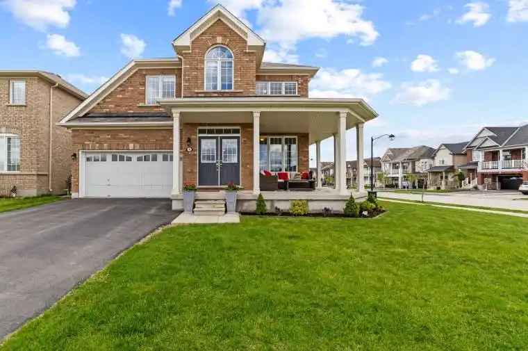 Welcome to this beautifully maintained and charming 4 bedroom, 3 bathroom home, ideally located on a spacious corner lot with a classic wrap-around porch, perfect for enjoying your morning coffee or relaxing evenings. From the moment you arrive, the striking double front door entry sets the tone for the warm and inviting interior. Step inside to discover a bright, open concept main floor, neutrally painted throughout and designed for modern family living. Stylish laminate flooring flows seamlessly across the main level, where you’ll find a versatile dining room that can serve as a secondary family room or play area, and features a dedicated office, ideal for working from home or managing busy schedules. The heart of the home is the sleek, contemporary kitchen, featuring gorgeous recently installed quartz countertops (Feb 2025), a walk-in pantry, and a built-in coffee nook. Large sliding glass doors off the kitchen lead to a spacious, unspoiled backyard, a blank canvas with endless potential for outdoor entertaining or gardening. Interior access off the kitchen to a two-car garage adds everyday convenience. Upstairs, you’ll find plush, newly installed carpeting (April 2025) and four generously sized bedrooms, offering comfort and privacy for the whole family. Master bedroom is spacious and features two walk-in closets and an abundantly sized ensuite with soaker tub, double sinks, separate shower. Located close to schools, parks, and shopping, this home combines comfort, functionality, and location, all in one beautiful package. Over 1200+ sq.ft of unfinished basement. Don’t miss your chance to own this exceptional family home in one of the area’s most sought-after communities!