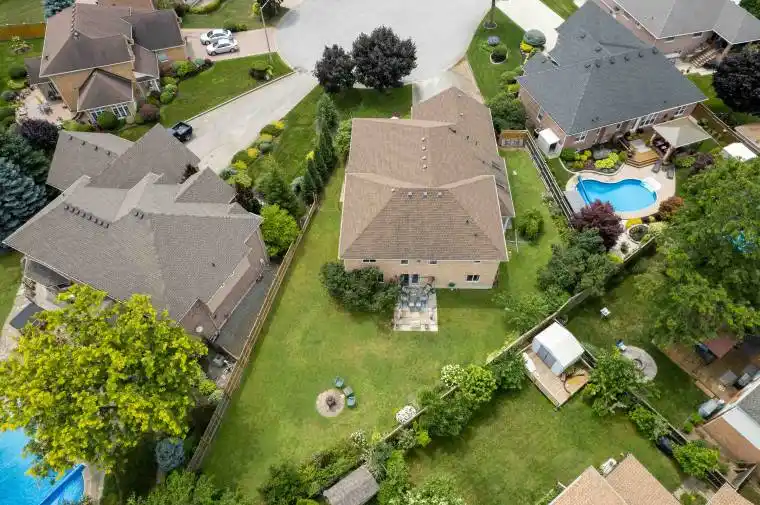 Much larger than it looks! Located in the prestigious Moretta Estates – on a private cul de sac with a massive pie shaped lot! Custom built 4 level backsplit boasting 4000sqft of total living space boasting 4+1 Bedrooms, 2 Bathrooms, and full walk out basement! Main floor layout offers inviting foyer with access into your double car garage, sunken living room, formal dining room and a massive chef’s dream kitchen with access to a covered side patio – perfect for family BBQs! Second level has 4 bedrooms all equipped with tons of closet space and a 5+ piece bathroom with jacuzzi tub, stand up tiled shower and double vanities! Lower level is truly a remarkable space being above grade and equipped with a full walk out basement from the rec room plus having an additional side entrance. Enjoy the comfort of natural light into the oversized rec room featuring a gas fireplace, home office, pool table/games area, additional bedroom and 4 piece bathroom. The lowest basement area has the opportunity to create a true inlaw suite or ability to finish into another bedroom/theatre room/additional office space, coupled with a cold cellar and massive laundry area loaded with additional storage. Double car garage is fully finished with vinyl side interior and the driveway has enough space to park up to 6 vehicles! Fully fenced private backyard with enough space to install a future pool, offers plenty of garden/lawn area and additional storage space if needed. Fully landscaped property with underground sprinkler system – a green thumb’s dream! Perfect for families that are looking to expand or have inlaws move in to live under the same roof! Close to all amenities, minutes to wine country, golf courses, and QEW highway. Do not let this one slip by – this is the opportunity you’ve been waiting for!