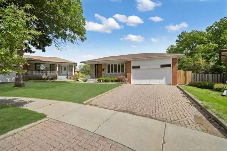 Welcome to this solid, well-maintained bungalow nestled on a quiet, family-friendly cul-de-sac in desirable Richview Park. Situated on an expansive pie-shaped lot, this home offers incredible space both inside and out. It is perfect for growing families or multi-generational living. Step onto the inviting front porch, ideal for relaxing or hosting family and friends. Inside, you’ll find a bright and spacious main floor with a thoughtful layout that exudes pride of ownership. The open-concept living and dining areas are flooded with natural light, creating a warm and welcoming atmosphere. The main level features a generous foyer, an updated eat-in kitchen with stainless steel appliances, and three well-proportioned bedrooms. The primary bedroom boasts beautiful hardwood flooring, wall paneling, and extensive built-in closets. A sun-filled rear sunroom offers extra space for entertaining or relaxing, with direct access to a large interlock patio and a beautifully landscaped backyard ideal for summer gatherings. Downstairs, the fully finished lower level offers in-law suite potential with an open-concept living space, full kitchen, two additional bedrooms (each with double closets), a full bathroom, and a cold storage room. Hardwood floors run throughout the lower level, enhancing both comfort and appeal. Additional highlights include a double-car garage with built-in storage, laminate flooring throughout the main level, and two full bathrooms. Conveniently located close to schools, parks, shopping, public transit, highways, and all the amenities that make Richview Park one of the city’s most coveted communities.
