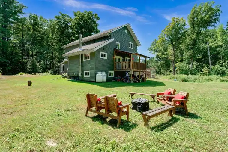 Just past the charming village of Verona, this 4-bedroom, 3-bath, lovingly renovated beauty blends timeless character with all the modern comforts of home. Entering through the side entrance, you’re welcomed into a spacious combined foyer and laundry area, freshly updated with built-in wooden bench and custom open shelving. Continue on into a beautiful open concept kitchen with centre island, family room and dining room space with vaulted ceilings, with plenty of room for entertaining. The exposed original log posts and beams give the house a unique sense of warmth, nostalgia and character. Off of the family room you’ll discover a fully renovated 3-piece main bathroom, complete with walk-in shower and ceramic tile floors. Patio doors lead you out to a sun-soaked back deck overlooking a large private backyard that’s a perfect place to sip your morning coffee or have late-night chats under the stars. Past the family and dining areas, you will find a sunken living room with a new propane wood-stove and the first of four bedrooms. Walking up the gorgeous new hardwood staircase to the second floor, are three more well-appointed bedrooms, and the second floor 4-piece bathroom featuring a soaker tub and convenient linen closet. Heading back downstairs toward the basement is another side entrance on the west side of the home, opening up the possibility for a future in-law suite. The unfinished basement with additional 4-piece bathroom and wood-stove is awaiting your finishing touch. The real gift that this property has to offer is its location; the peaceful, tree-lined country road, close to amenities such as The K&P Trail, Rivendell Golf Club, McMullen Beach on Verona Lake and Public Boat Launch. This property comes with its very own chicken coop, a cozy fire pit for smores and stargazing, and lots of space to roam. All you have to do is move-in and start living the good life! A full list of updates is complete and available.