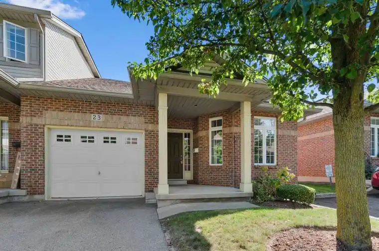 Welcome to 23-5595 Drummond Road, Niagara Falls. Discover the ease and comfort of one-level living in this beautifully maintained, move-in ready bungalow townhome, ideally situated in the heart of Niagara Falls. Enjoy the convenience of being close to shopping, amenities, and highway access all just minutes away. Step inside of a bright and spacious foyer that sets the tone for the rest of the home. French doors open into a versatile second bedroom featuring double closets perfect for guests or a home office. You’ll also appreciate the inside entry to the attached single-car garage for added convenience. The open-concept kitchen, dining, and living areas are enhanced by soaring vaulted ceilings and a cozy gas fireplace. Sliding patio doors lead to your private wood deck, the perfect space to relax or entertain. The oversized primary bedroom offers a generous 7×7 walk-in closet and ensuite bathroom. Hidden behind closet doors on the main level you’ll find laundry, offering true main-floor functionality. Downstairs, the full basement awaits your personal touch and includes a finished 3-piece bathroom a great bonus space with endless potential. Located in the quiet and sought-after community of Drummond Court, this home offers a low-maintenance lifestyle without compromise. Don’t miss your opportunity to make this exceptional townhome yours.