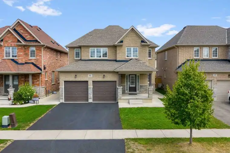 Welcome to 85 Sunset Way, a modern two-storey set in Thorold’s growing Rolling Meadows community. Built in 2017, this home offers over 2,200 square feet of finished space above grade with a thoughtful layout that’s perfect for family living. From the moment you arrive, the curb appeal stands out with its full brick and stone exterior, double garage and private driveway. Inside, the main floor features 9-foot ceilings and a design that balances open concept living with separate spaces. The kitchen and dining area flow together seamlessly, opening to a spacious living room, while a separate family room provides the flexibility for a second sitting area, playroom, or home office. A mudroom with main floor laundry and direct garage access adds everyday convenience. Upstairs, the home offers 4 generous-sized bedrooms, including a private primary retreat complete with a 5-piece ensuite and two spacious walk-in closets. The additional bedrooms provide plenty of room for family, guests, or a dedicated workspace. The backyard is fully fenced and finished with a paved patio and shed, creating a private outdoor space that’s perfect for growing families. Inside, thoughtful updates such as California shutters and the absence of carpet throughout keep the home low-maintenance and fresh. Positioned in a growing community with shopping and schools planned nearby, the location offers excellent convenience and connectivity. Rolling Meadows is a community designed with families in mind, offering nearby soccer fields, parks and walking paths.
