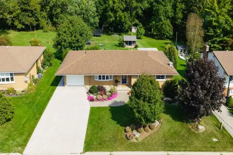 Highly desirable location! You will fall in love with this 3+1 bedroom all brick bungalow, situated on a generous lot, backing onto the scenic Grand Trunk Trail. Enjoy the best of both worlds with peaceful surroundings and walkable access to downtown St. Marys with its many amenities. The main floor features an open-concept living and dining area with sliding patio doors which leads to an elevated rear deck, perfect for entertaining or relaxing outdoors. The kitchen offers an abundance of storage, while the main level is complete with three bedrooms and a full 4-piece bathroom. Downstairs, you’ll be impressed by the spa-like 3-piece bathroom with a tiled shower and cozy in-floor heating. The fully finished basement also includes a spacious family room with a gas fireplace, built in storage, an fabulous laundry room, an additional bedroom, and an office or den. Outdoor living is a highlight, with a lower covered patio, a firepit area backing onto mature trees, and a welcoming covered front porch. Additional features include an attached one-car garage, a new concrete driveway/walkway, a 220amp generator inlet plug and walk-out basement. This well-maintained bungalow is move-in ready and offers the perfect combination of comfort, convenience, and charm.
